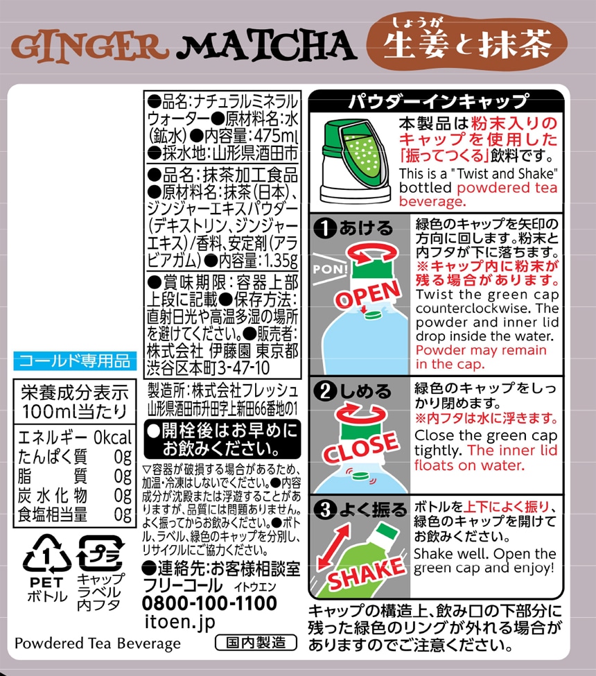 - matcha LOVE 生姜と抹茶 PET 475ml