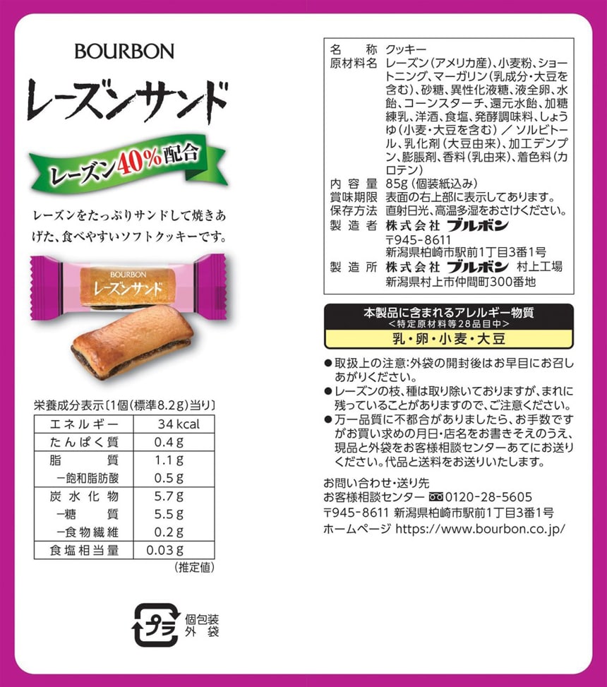 [24袋]ブルボン レーズンサンド 85g | レーズン40%配合