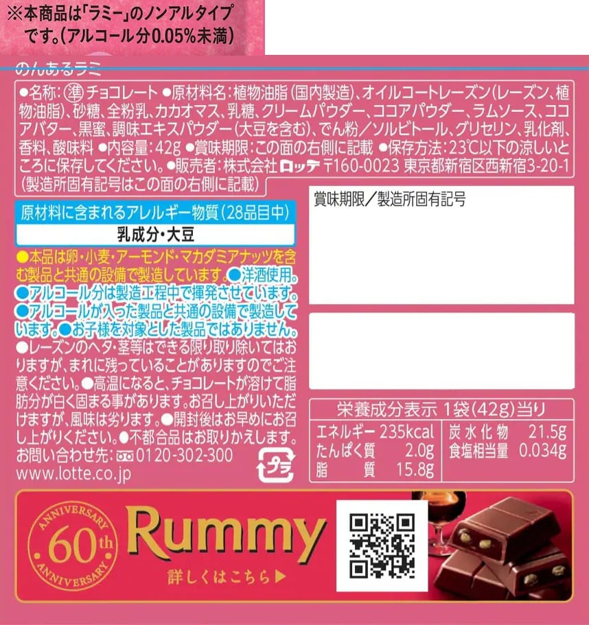 発売60周年を迎えた洋酒チョコレート「ラミー」が、のんある品質になりました※!