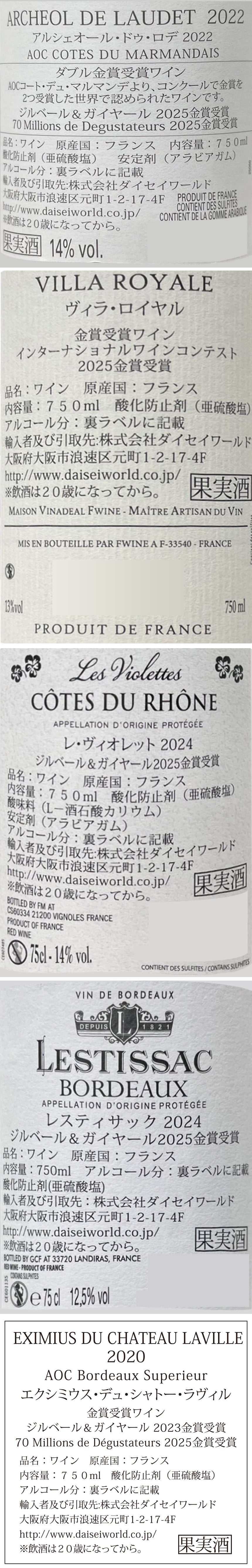 - 合計7冠のフランス金賞受賞ワインセット 5種セット