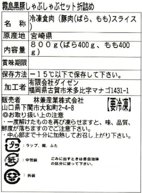 - 霧島黒豚 しゃぶしゃぶ折詰めセット 800g