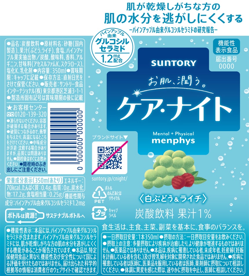 [72本]【機能性表示食品】サントリー食品インターナショナル お肌潤う ケア・ナイト 350mlペット | お肌潤う。ケア・ナイト