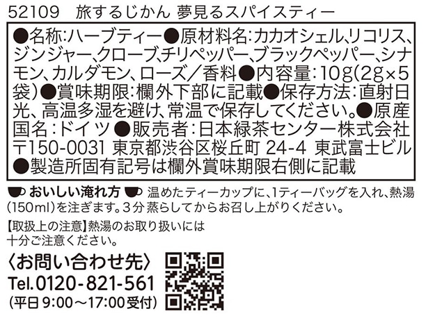 [計60杯]日本緑茶センター ティーブティック 旅するじかん 夢見るスパイスティー 5袋入×12個 | エキゾチックなインドの夜をイメージした、やさしい甘さとスパイスの刺激が特徴のスパイスティー。