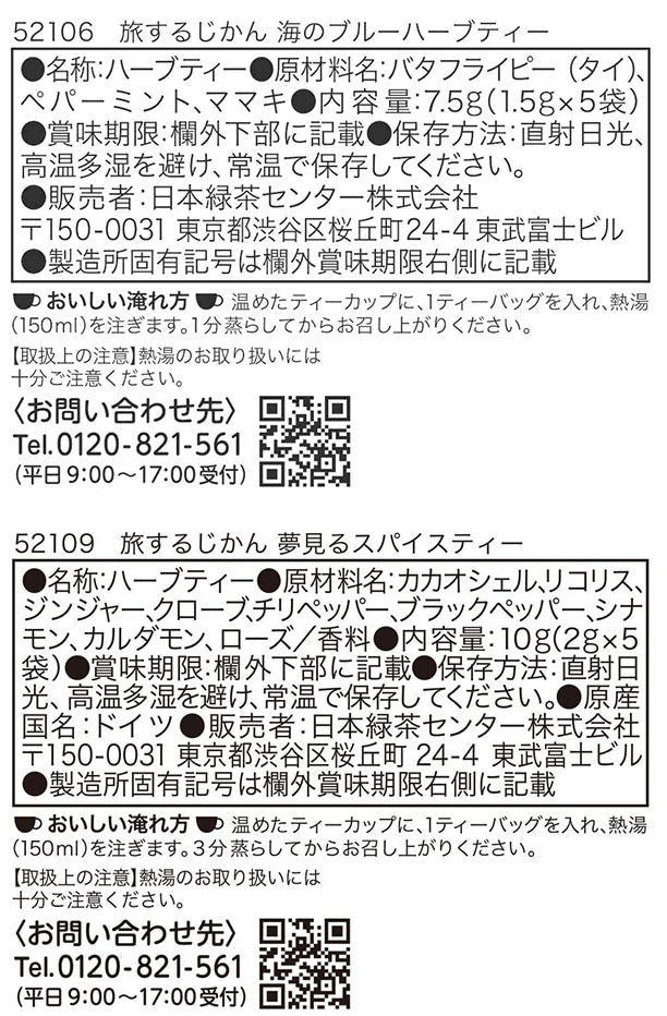 [2種計120杯]日本緑茶センター ティーブティック 旅するじかん ( 海のブルーハーブティー / 夢見るスパイスティー )