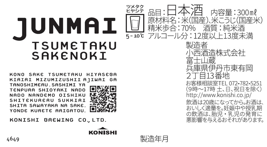 ・KONISHI 純米吟醸ひやしぼり 300ml×1本