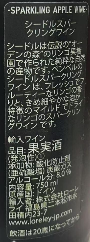 [6本]ローレライ スパークリングアップルワイン 750ml | 二次発酵のスパークリングアップルワイン