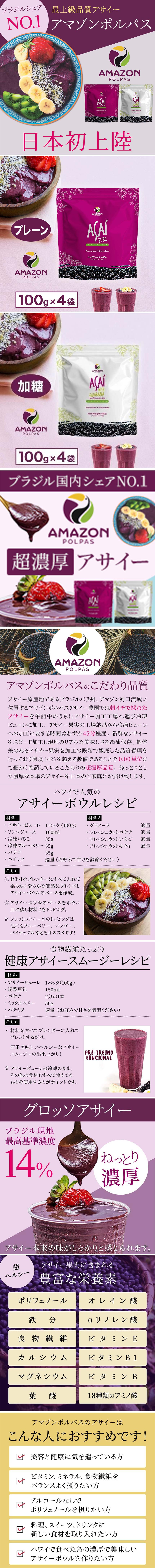 - アマゾンポルパス 冷凍アサイーピューレ(プレーン) 400g / 冷凍アサイーピューレ(加糖) 400g