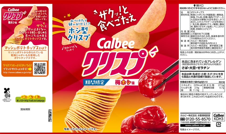 [48個]カルビー クリスプ梅ホシ味 45g | ザクッと食感が止まらない、みんなで手軽に楽しめる食べごたえのあるマッシュポテトチップスです。