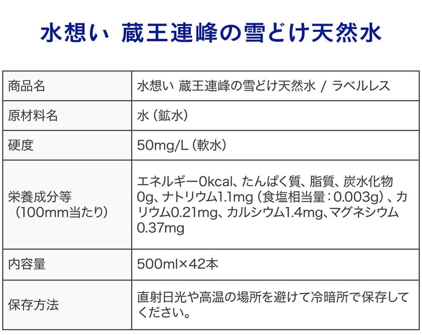 日本の水を想う、雪どけ水由来の天然水。