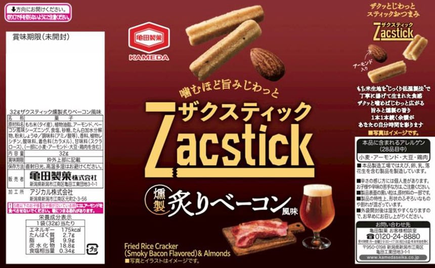 燻製の香りとベーコンの旨みが楽しめる、ザクザクとした食感が特徴のスナックです。