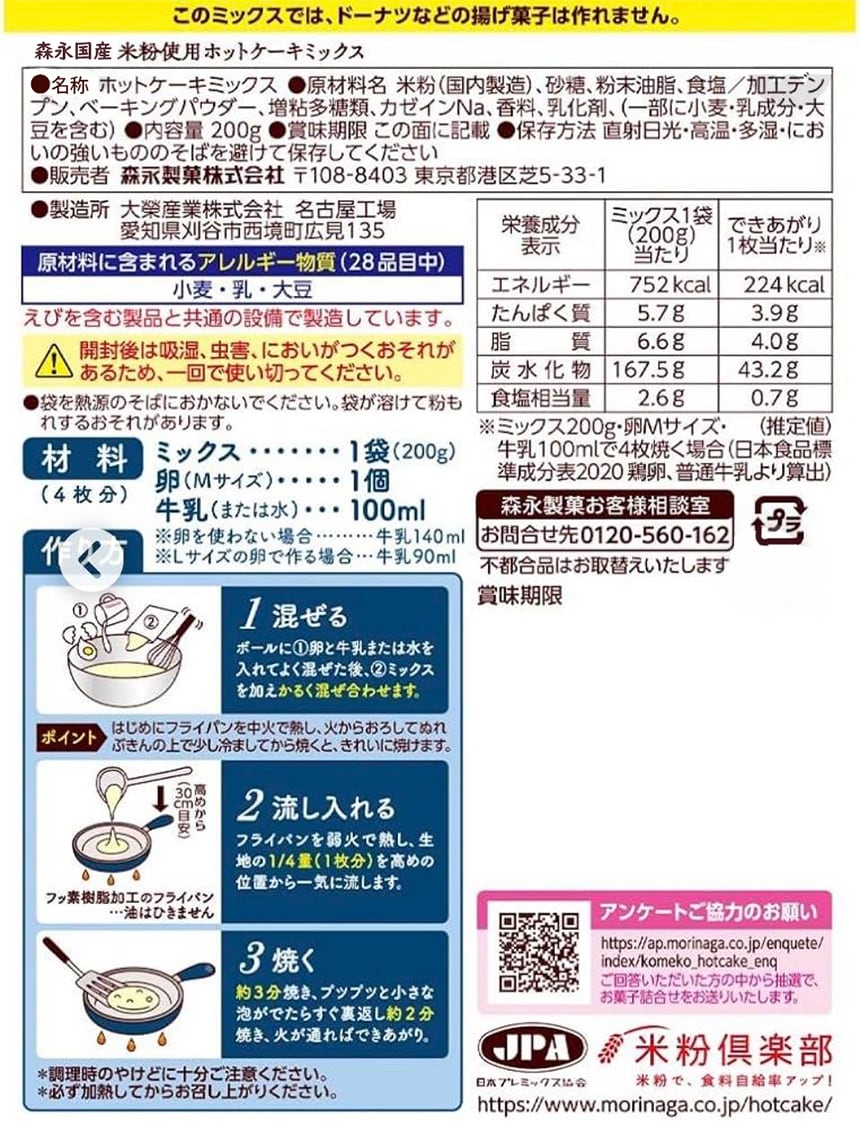 [20個]森永製菓 国産米粉ホットケーキ 200g | 国産米粉を100%使用