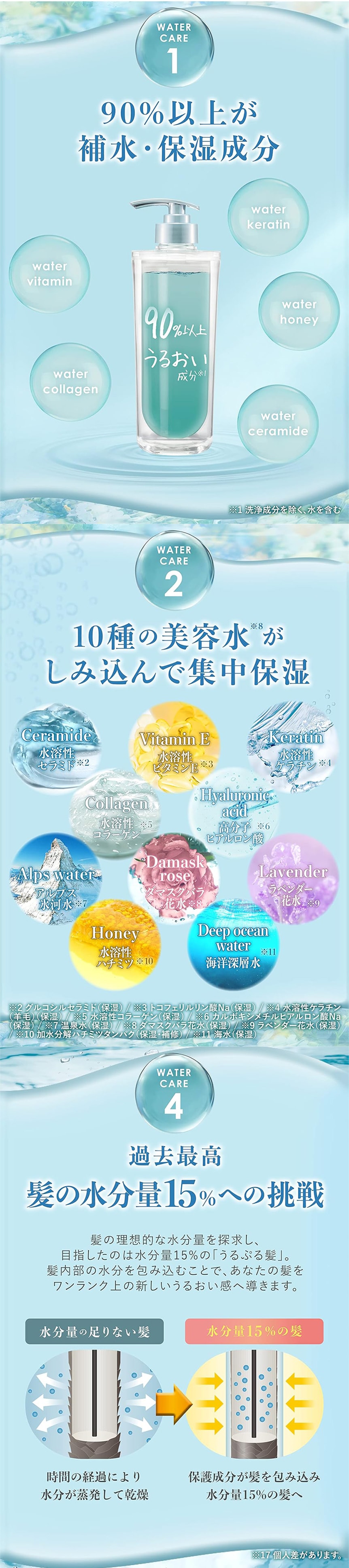 10種の水溶性美容液成分を配合し、しっとりまとまる「うるぷる髪」に導きます。