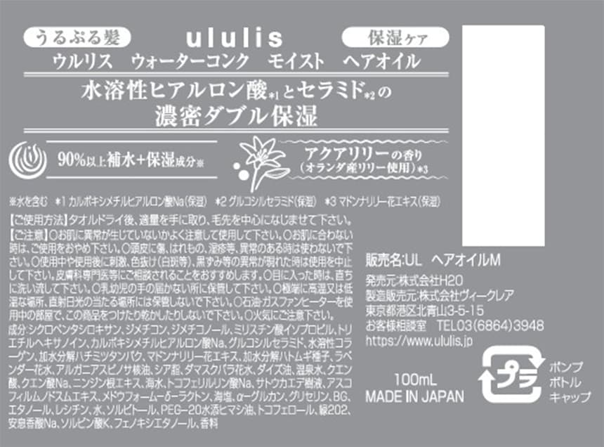 - ・ululis ウォーターコンク モイストヘアオイル 100ml×3個