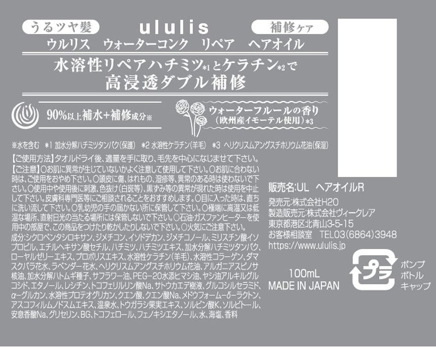 ・ululis ウォーターコンク リペアヘアオイル 100ml×3個 - 申込可能個数