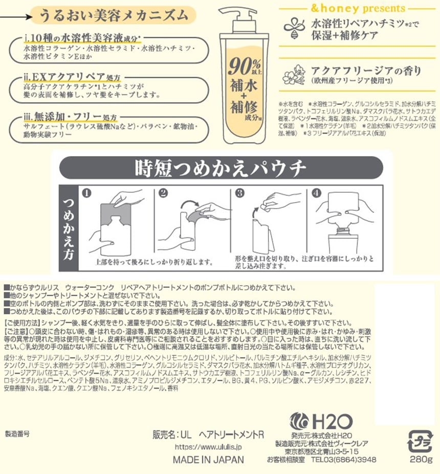 ・ululis ウォーターコンク リペアヘアトリートメント詰替え 280g×3個