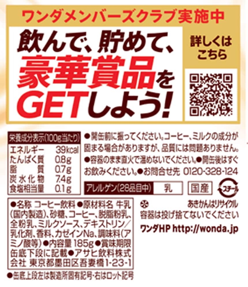 [30本]アサヒ飲料 ワンダ 特製カフェオレ 缶 185g | こだわりのミルク感とおいしさで、ココロを満たす王道カフェオレ