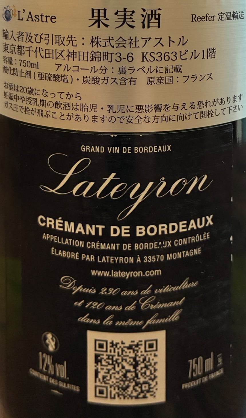 ラテイロン・ポーリアン・クレマン・ド・ボルドー・ブリュットは、ラテイロン社の上級キュヴェで、スタンダードキュベよりも長い24ヵ月の熟成が特徴です。