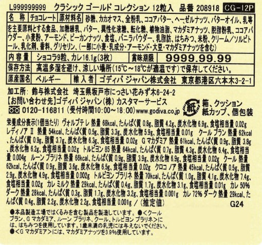 [2箱]ゴディバジャパン クラシック ゴールド コレクション 12粒入