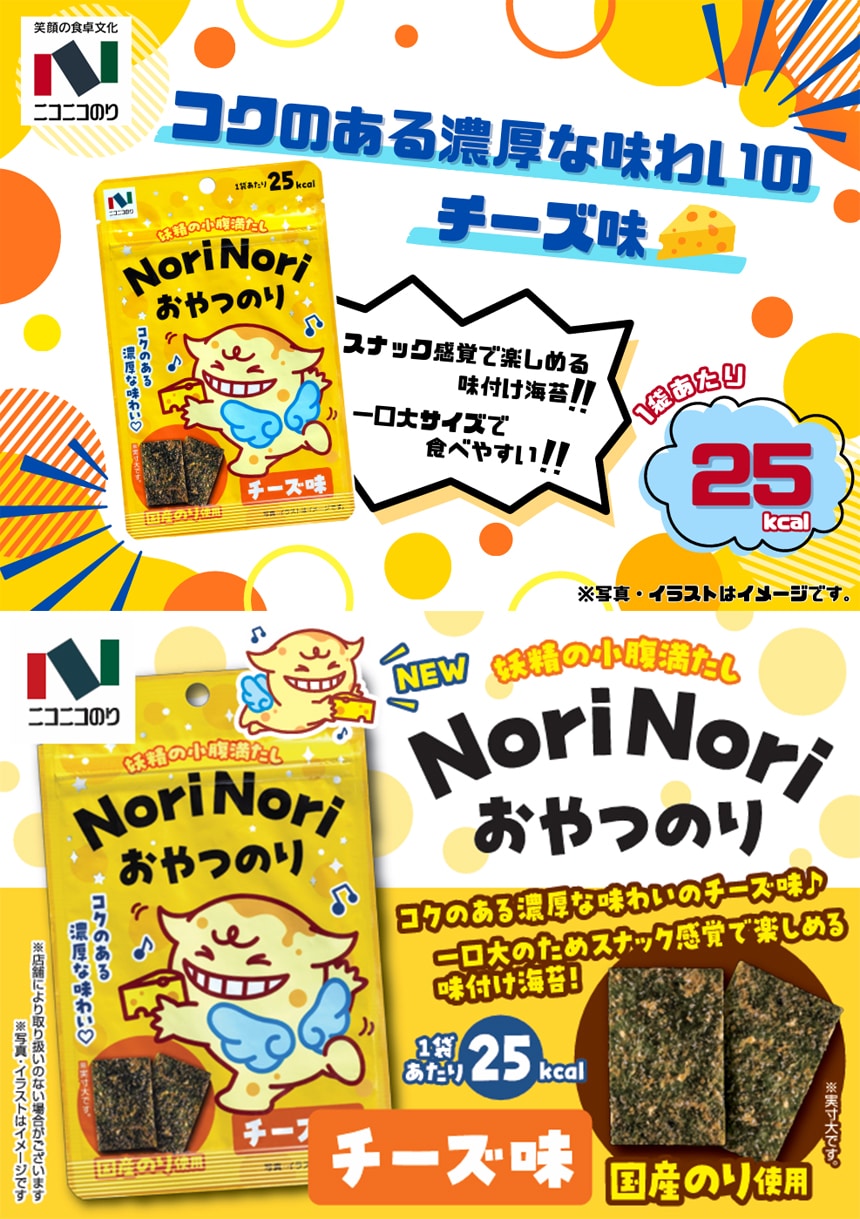 ミネラルや食物繊維が豊富な海苔をチーズ味のフレーバーと組み合わせたヘルシースナックです。