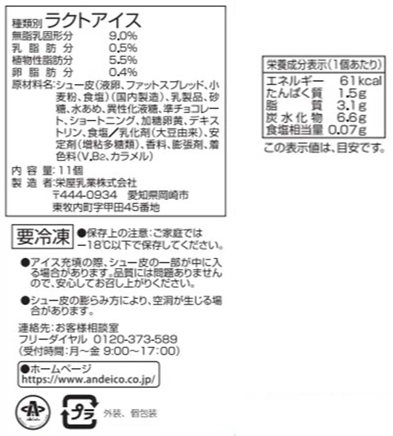 - [冷凍]アンド栄光 NPチョコチップシューアイス 11個×6袋