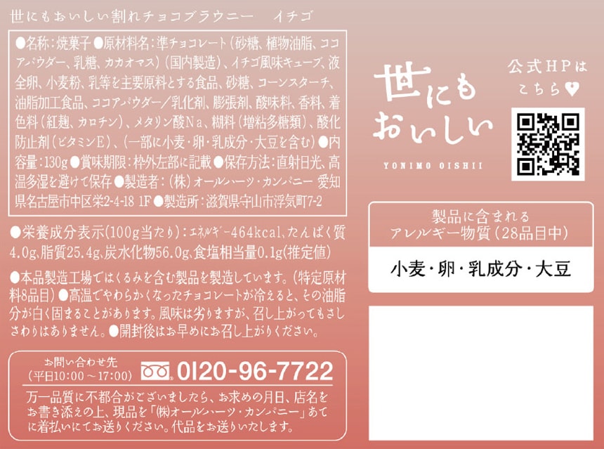 [20個]オールハーツ・カンパニー 世にもおいしい割れチョコブラウニー イチゴ 130g