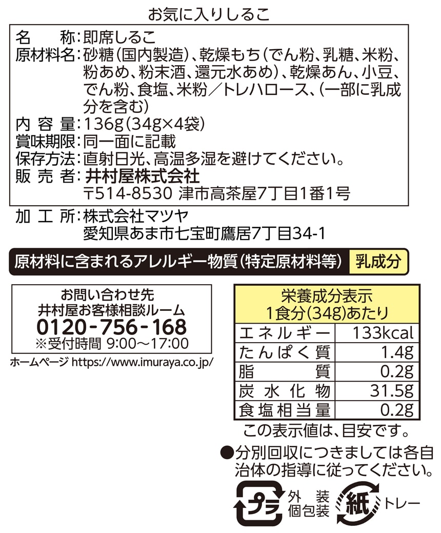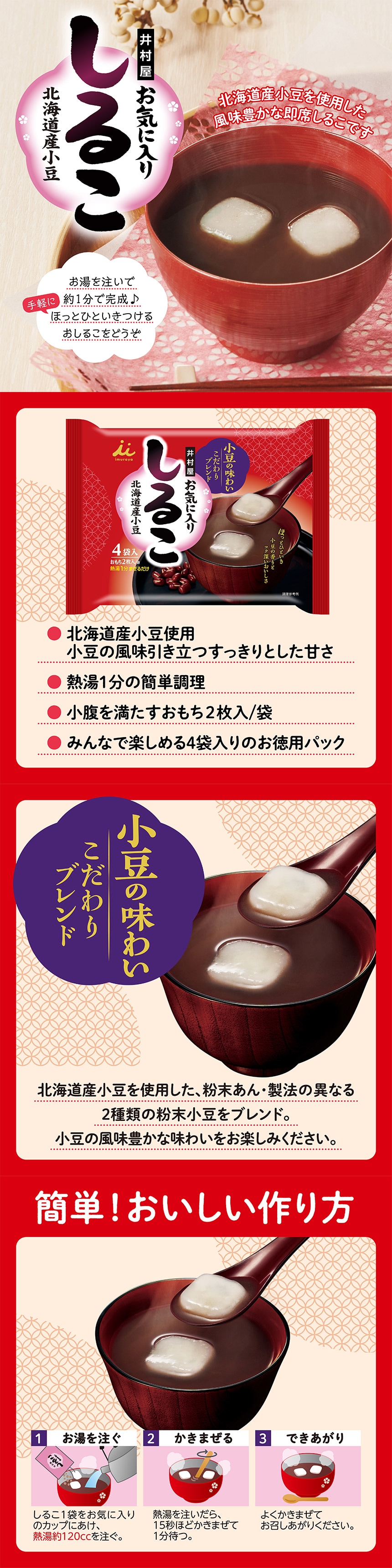[6個]井村屋 お気に入りしるこ 34g×4袋 | 熱湯1分の簡単調理で食べられる即席おしるこ。家族や仲間と食べるのにピッタリの徳用タイプです。