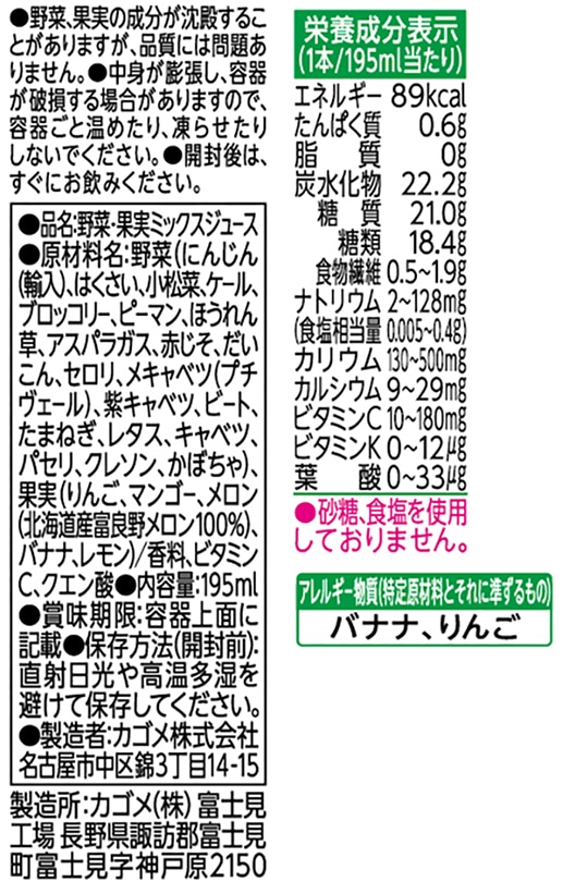- カゴメ 野菜生活100 信州巨峰ミックス 195ml / 本日の逸品 北海道富良野メロンミックス 195ml