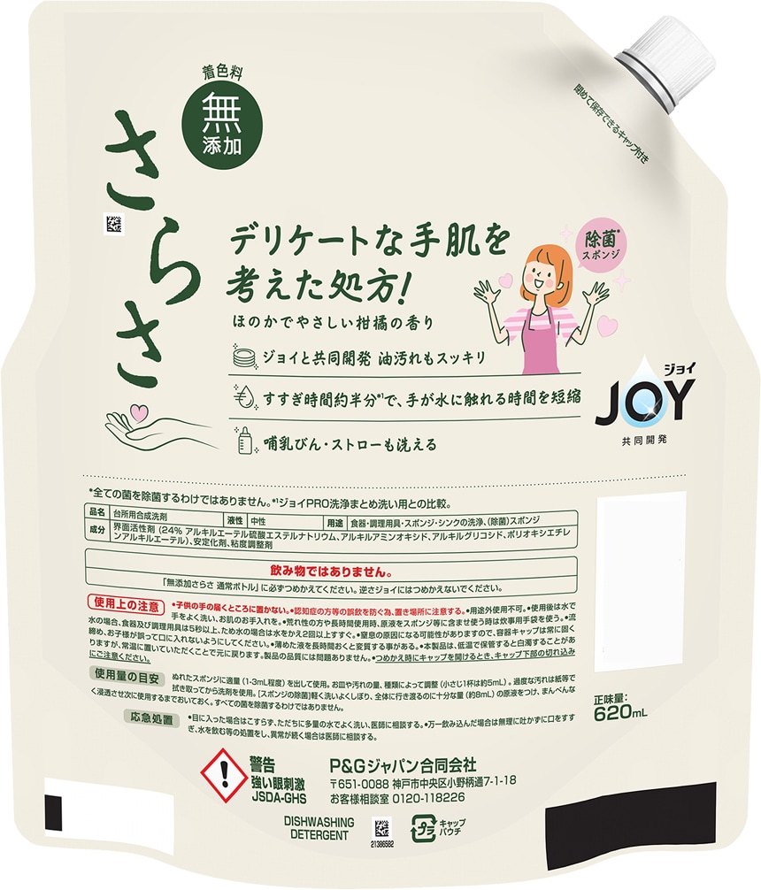 [6個]P&Gジャパン さらさ 食器用洗剤 つめかえ 特大 620ml | 刺激の少ない界面活性剤や着色料0など、肌に優しい・安心安全な成分を配合。