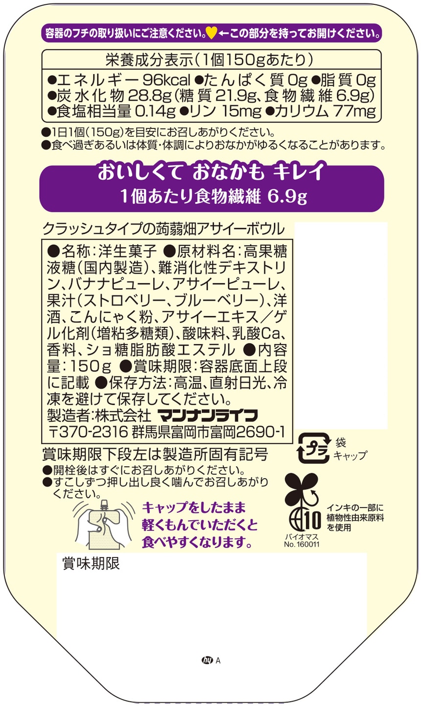 [60個]マンナンライフ クラッシュタイプの蒟蒻畑 アサイーボウル 150g | おいしくて おなかも キレイ