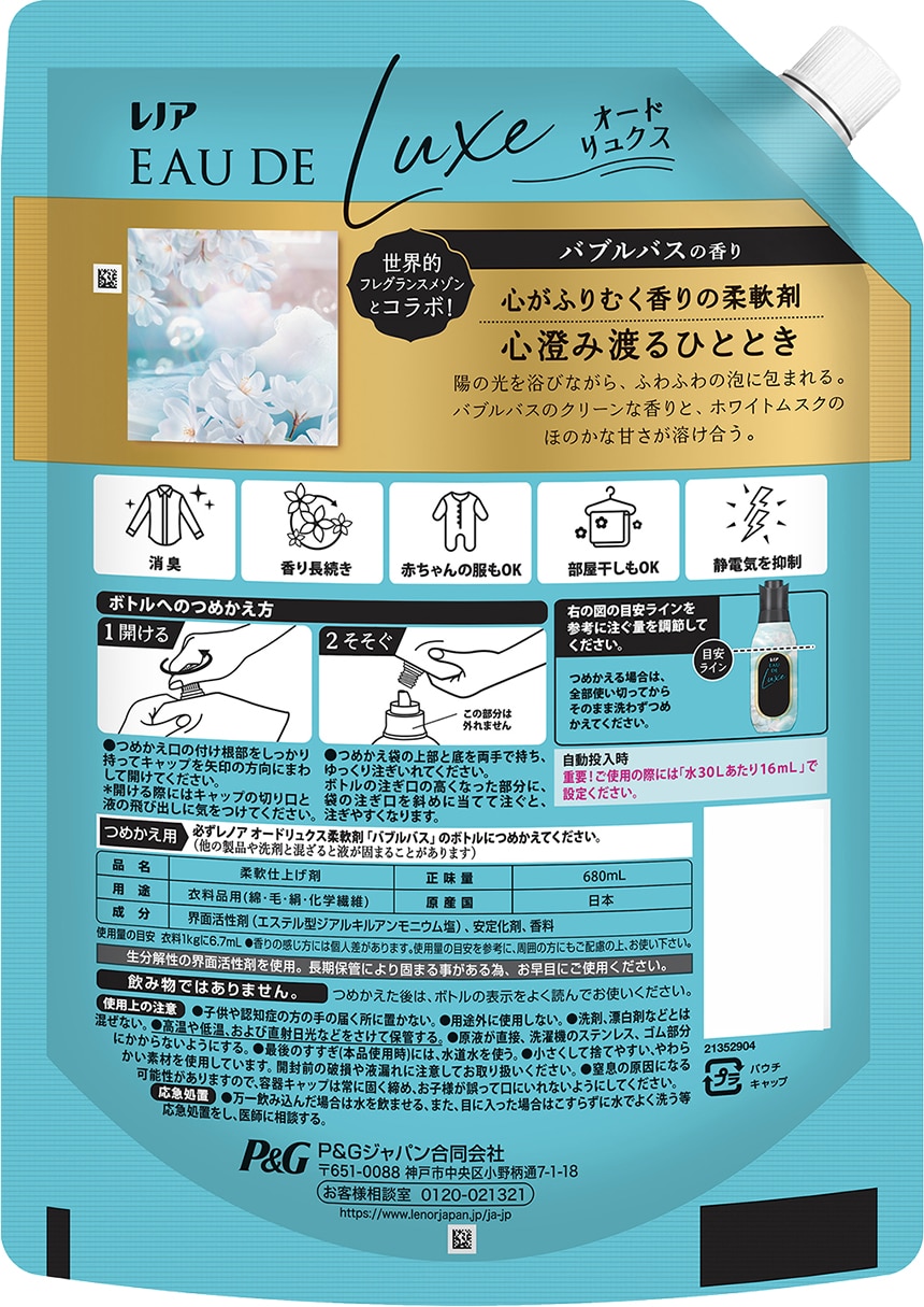 [8個]P&Gジャパン レノア オードリュクス バブルバス 特大 680ml | オードリュクスからバブルバスの香りが新登場!