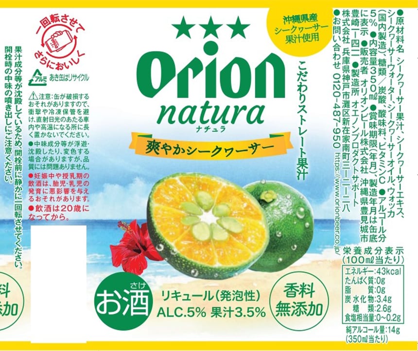[48本]オリオンビール natura 爽やかシークヮーサー 350ml | シークヮーサーの爽やかな果実感がより実感できる味わい。