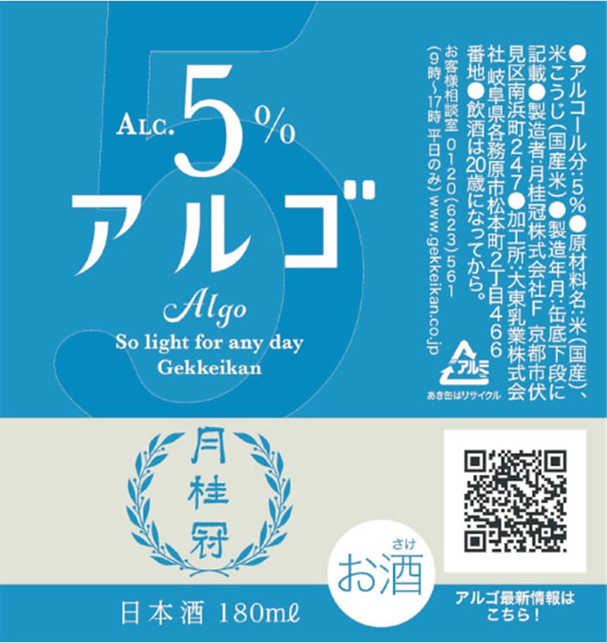 - 月桂冠 アルゴ 日本酒5.0 180ml