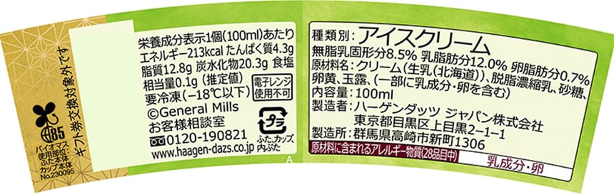 ※アイスクリーム類は、-18度以下での冷凍保存の状態では、品質の劣化が極めて小さい食品ということで、賞味期限の設定がされておりません。