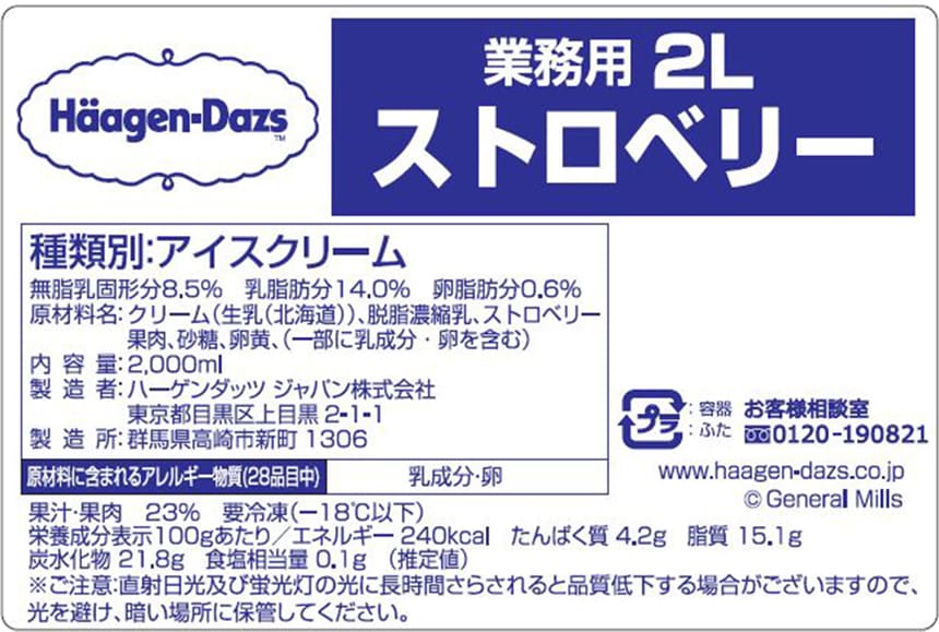 ※アイスクリーム類は、-18度以下での冷凍保存の状態では、品質の劣化が極めて小さい食品ということで、賞味期限の設定がされておりません。