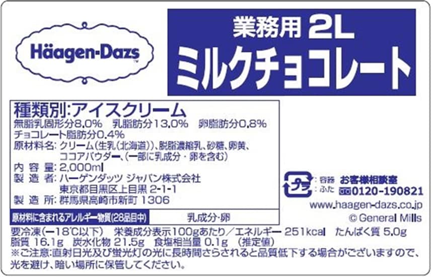 ※アイスクリーム類は、-18度以下での冷凍保存の状態では、品質の劣化が極めて小さい食品ということで、賞味期限の設定がされておりません。