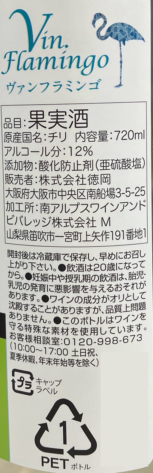 [12本]徳岡 ヴァンフラミンゴ 白 PET 720ml | 爽やかな味わいでフレッシュな酸と果実味が感じられる白ワインです。