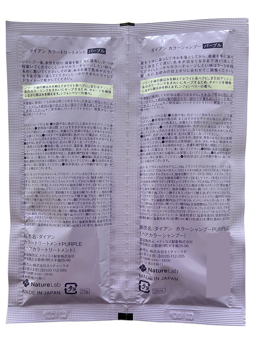 [10個]ネイチャーラボ ダイアン カラーシャンプー&トリートメント パープル トライアル | 次のカラーリングに影響が出ないよう配慮したノンシリコンタイプ