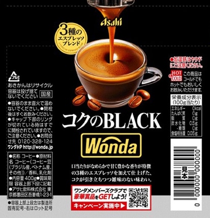 - ワンダ コクのブラック ボトル缶 400g
