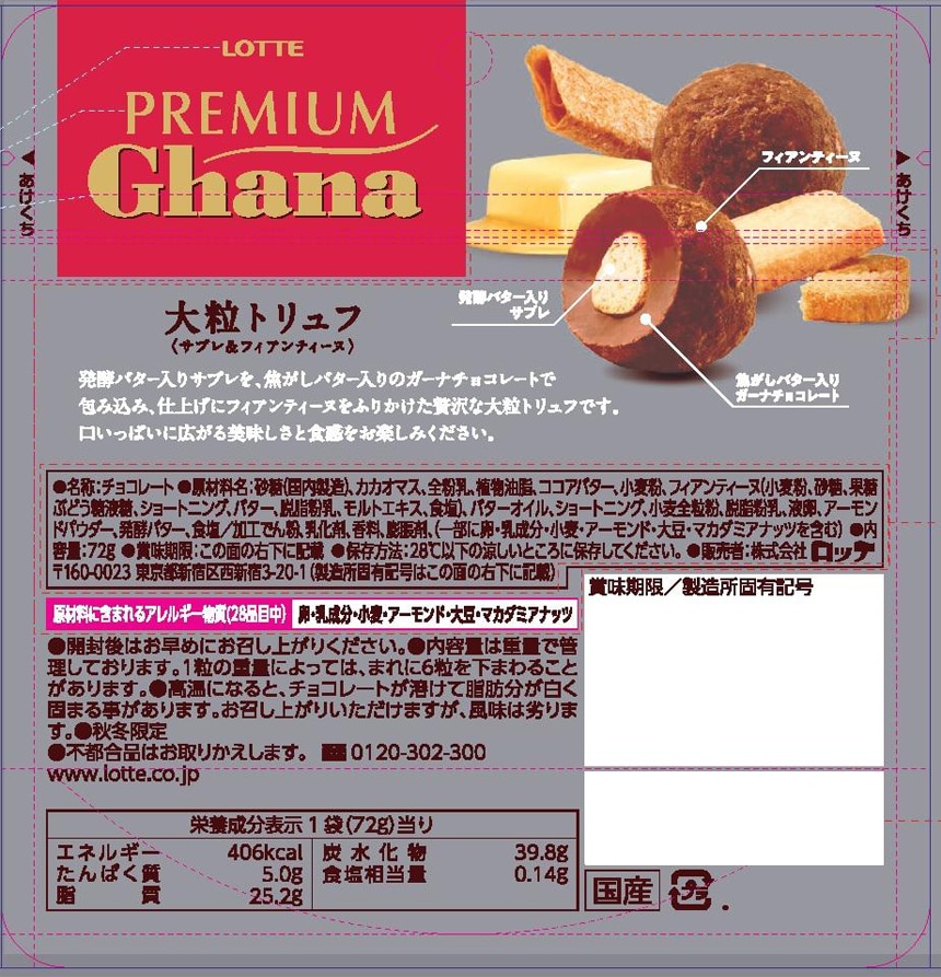 ・プレミアムガーナ大粒トリュフ〈サブレ&フィアンティーヌ〉 72g×10個 - 賞味期限