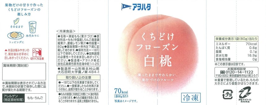 [12個]アヲハタ くちどけフローズン 白桃 80g | 凍っているのにやわらかい冷凍フルーツ