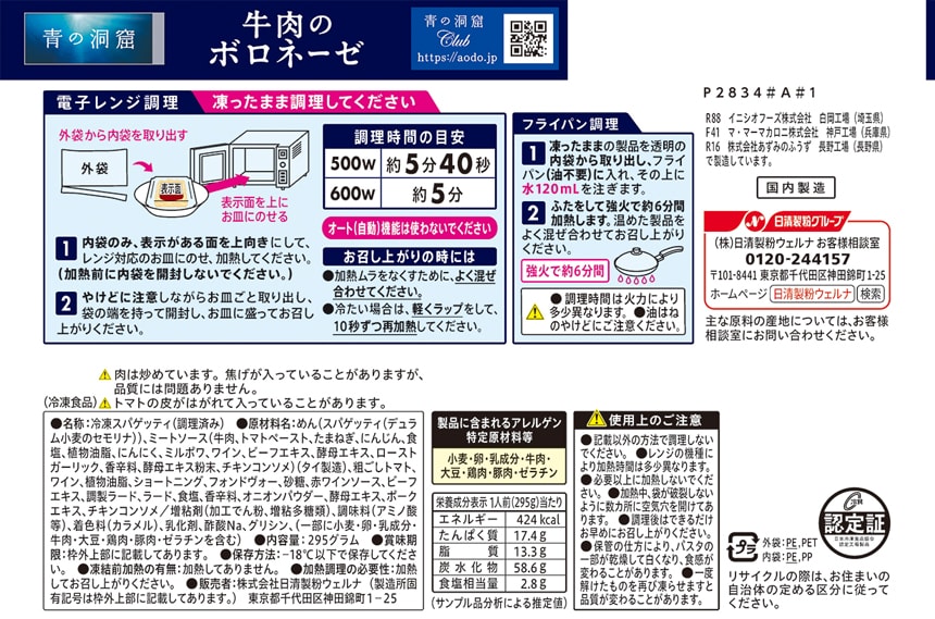 [14個]日清製粉ウェルナ 青の洞窟 牛肉のボロネーゼ 295g | 牛肉の旨味、ハーブの香りと赤ワインのコク