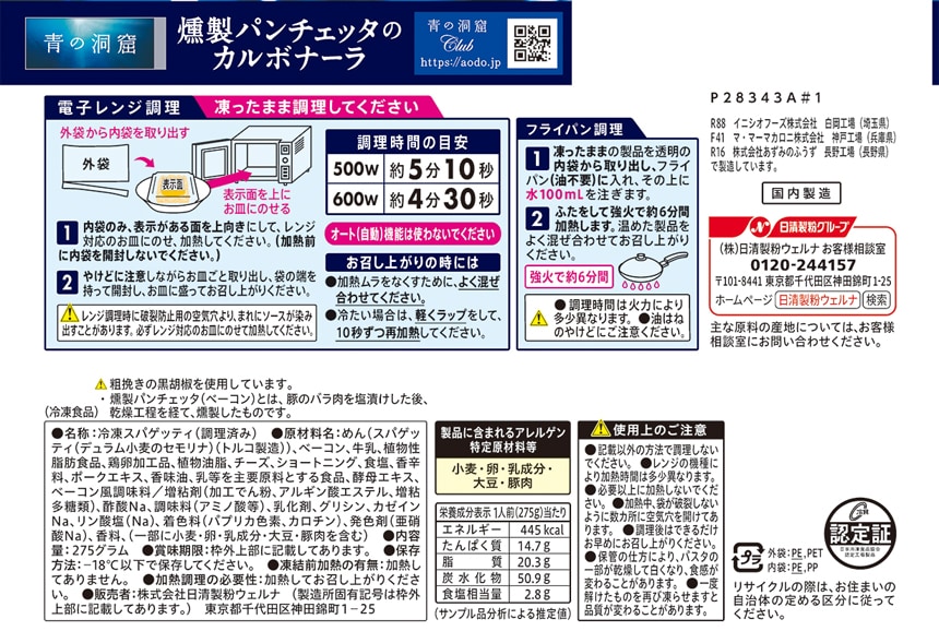 [14個]日清製粉ウェルナ 青の洞窟 燻製パンチェッタのカルボナーラ 275g | 燻製パンチェッタの旨味とチーズのコク