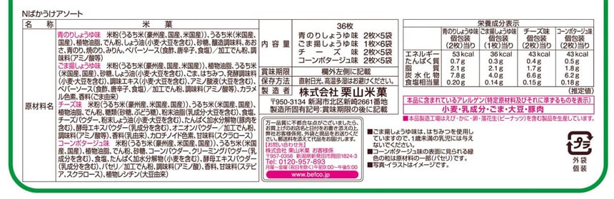 [12個]栗山米菓 ばかうけアソート 36枚入 | 人気の4種アソート