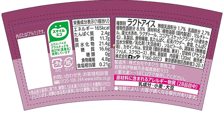 ※アイスクリーム類は、-18度以下での冷凍保存の状態では、品質の劣化が極めて小さい食品ということで、賞味期限の設定がされておりません。