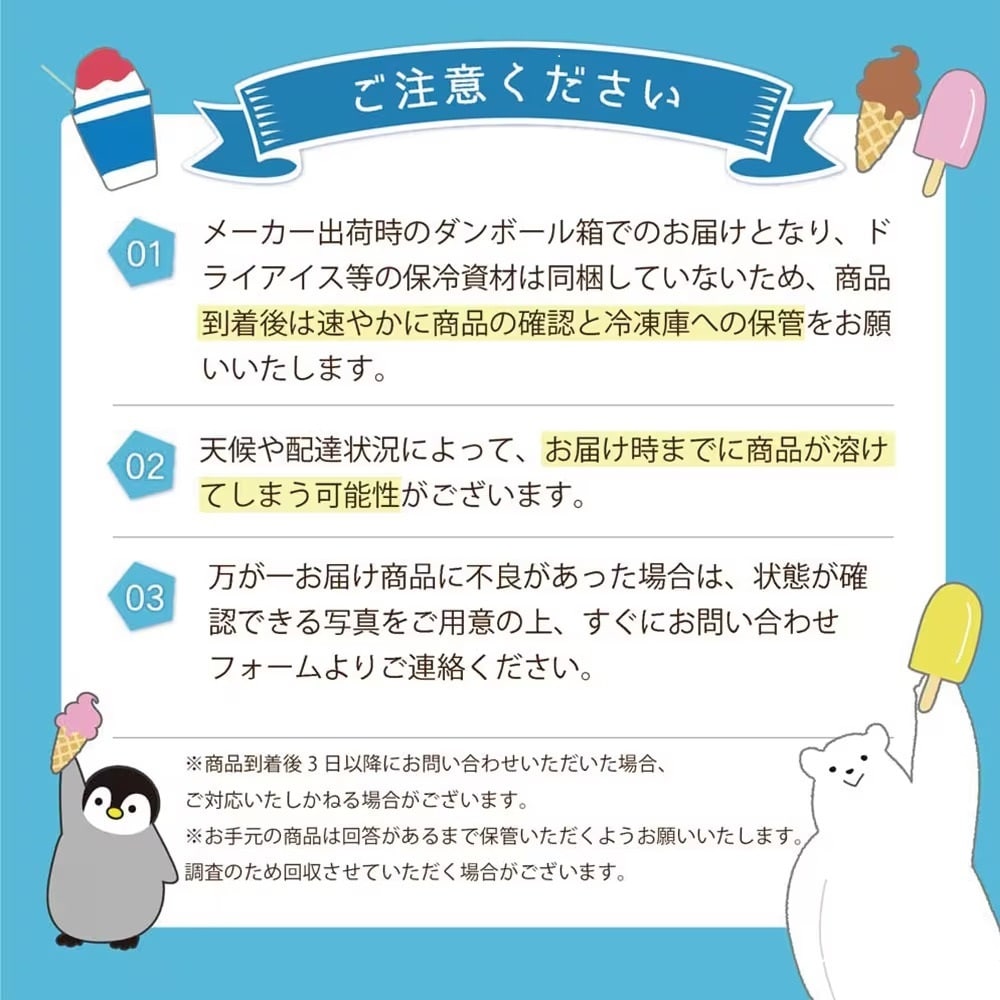 ※アイスクリーム類は、-18度以下での冷凍保存の状態では、品質の劣化が極めて小さい食品ということで、賞味期限の設定がされておりません。