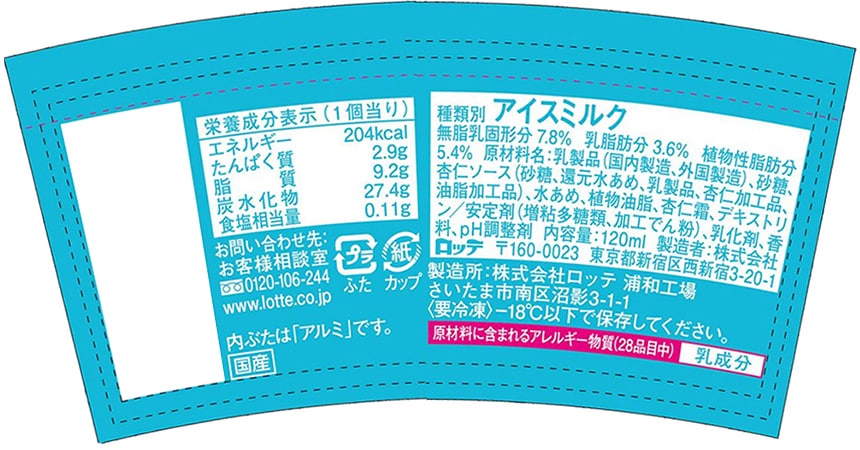 ※アイスクリーム類は、-18度以下での冷凍保存の状態では、品質の劣化が極めて小さい食品ということで、賞味期限の設定がされておりません。