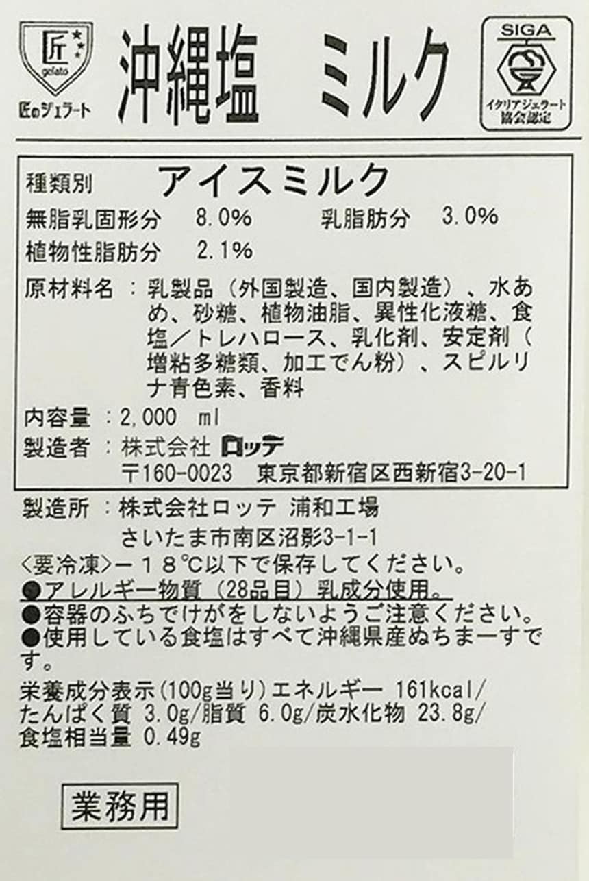 [冷凍]ロッテ 匠のジェラート 沖縄塩 ミルク 2000ml×2個 | 沖縄県産の塩「ぬちまーす」使用。