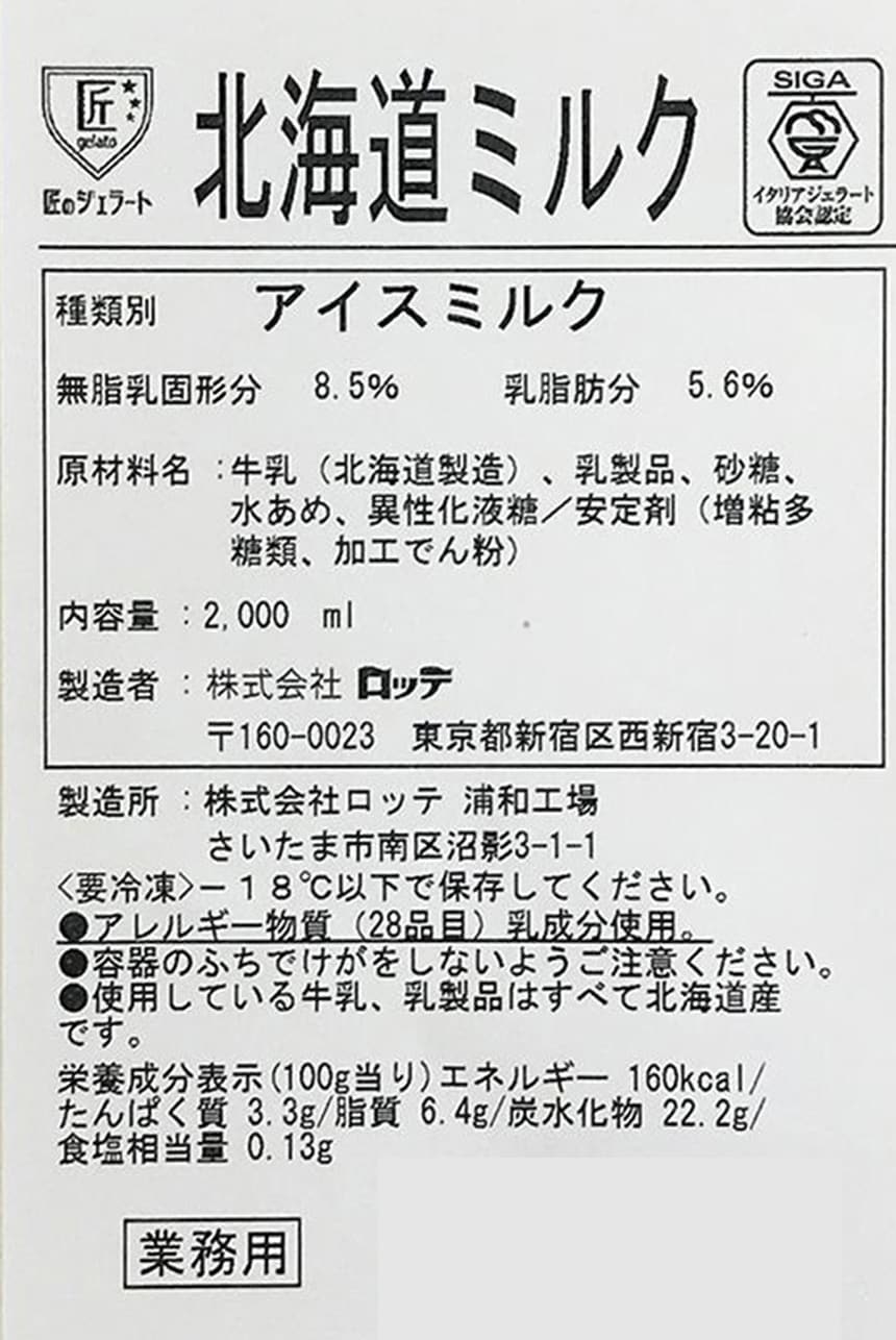 [冷凍]ロッテ 匠のジェラート 北海道ミルク 2000ml×2個 | 北海道産牛乳乳製品使用。