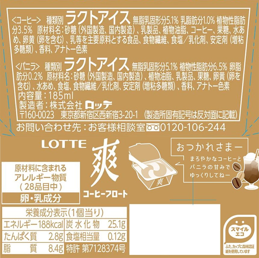 - [冷凍]ロッテ 爽 コーヒーフロート 185ml×6個