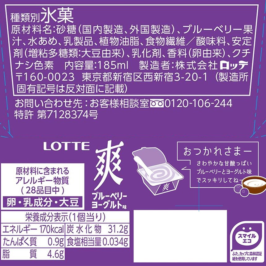 - [冷凍]ロッテ 爽 ブルーベリーヨーグルト味 185ml×6個